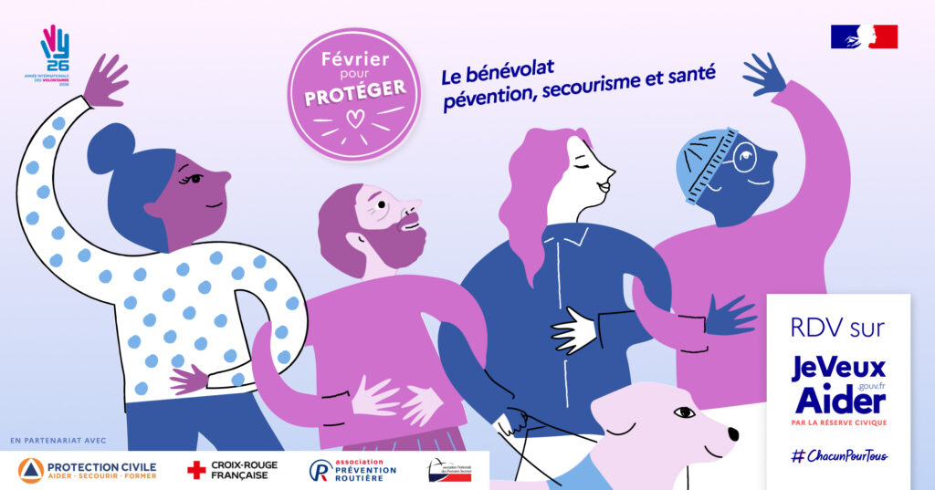 « Février pour protéger » est une campagne lancée par JeVeuxAider.gouv.fr, la plateforme publique du bénévolat portée par la Réserve Civique. L’objectif : mettre en lumière les missions de bénévolat liées à la prévention, à la santé et à la sécurité civile partout en France.